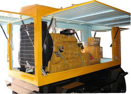 河南柴油发电机组/移动柴油发电机组设计独具创新,机动性高、重心低、制动安全、制造精良、外形美观。 河南拖车车架采用槽梁焊接成框架结构,节点选择合理、强度高、刚性好;同时装有钢板弹簧悬架结构;拖车采用高度可调节插销式牵引架,适用于各种高度牵引车;采用圆形钢管焊接直通式车轴,结构紧凑,安全可靠;车架四角设有机械式支撑装置,配备惯性行车制动、驻车制动和脱离应急制动,确保机组在各种状况下的安全;车架前端设有支撑轮,具备承受机组垂直载荷的功能的同时还具备导向功能;整车配备转向和刹车指示灯,同时装有尾灯标准插头